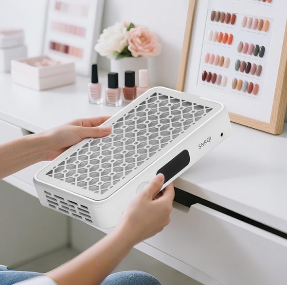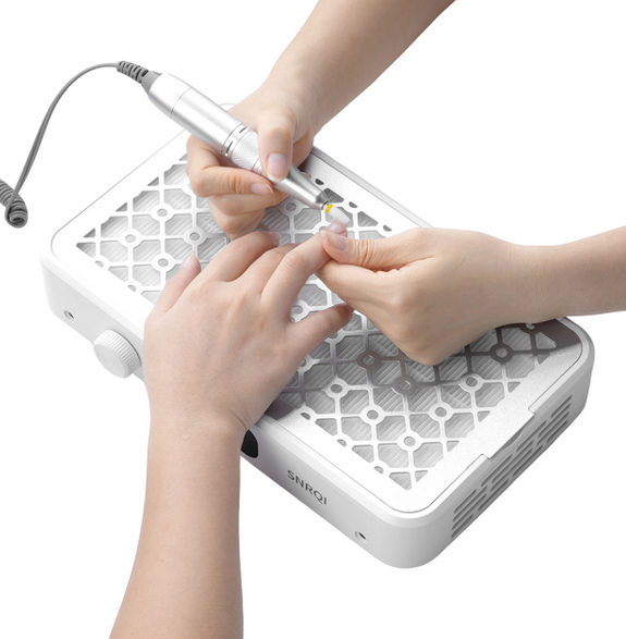 Grâce à sa technologie double turbine 7000 tr/min, cet aspirateur élimine jusqu’à 99,9 % des poussières pendant le limage ou la pose d’ongles en gel, acrylgel ou résine. Il garantit un environnement de travail propre, hygiénique et confortable.